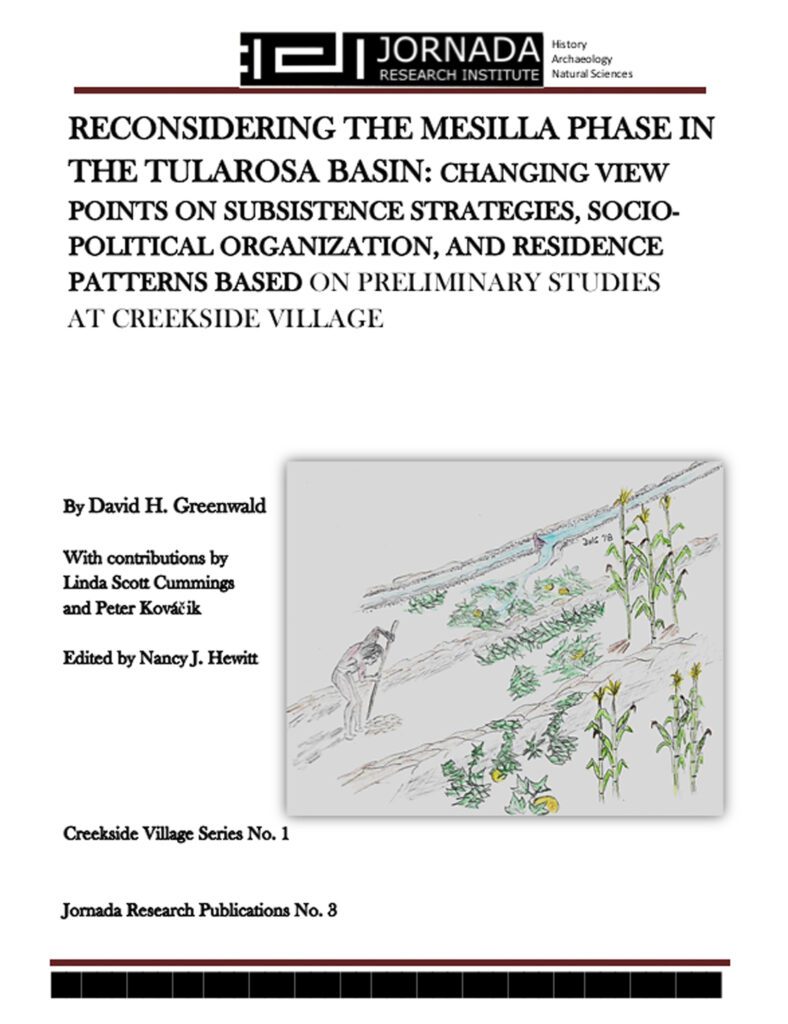 RECONSIDERING THE MESILLA PHASE IN THE TULAROSA BASIN: CHANGING VIEW POINTS ON SUBSISTENCE STRATEGIES, SOCIO-POLITICAL ORGANIZATION, AND RESIDENCE PATTERNS BASED ON PRELIMINARY STUDIES AT CREEKSIDE VILLAGE by David H. Greenwald